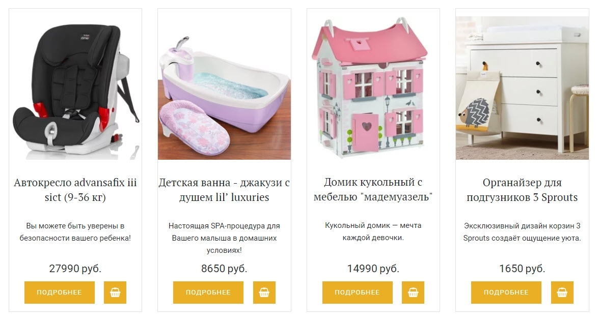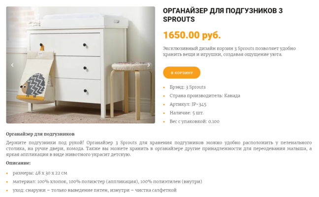 Также, в комплекте идёт решение, позволяющее скрыть с виджета Товар магазина - всё, кроме кнопки. Это даст возможность создавать страницы в духе крупных интернет-магазинов. Для ознакомления, достаточно взглянуть на изображение ниже: