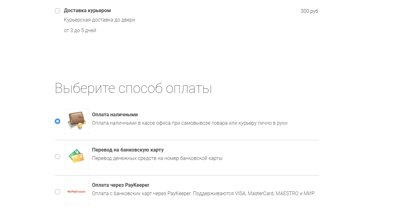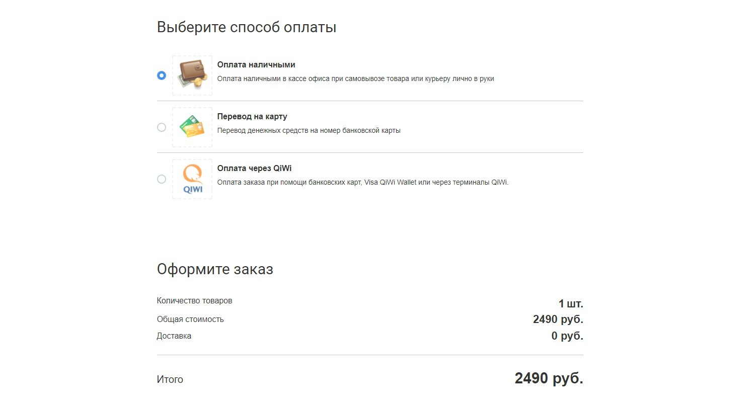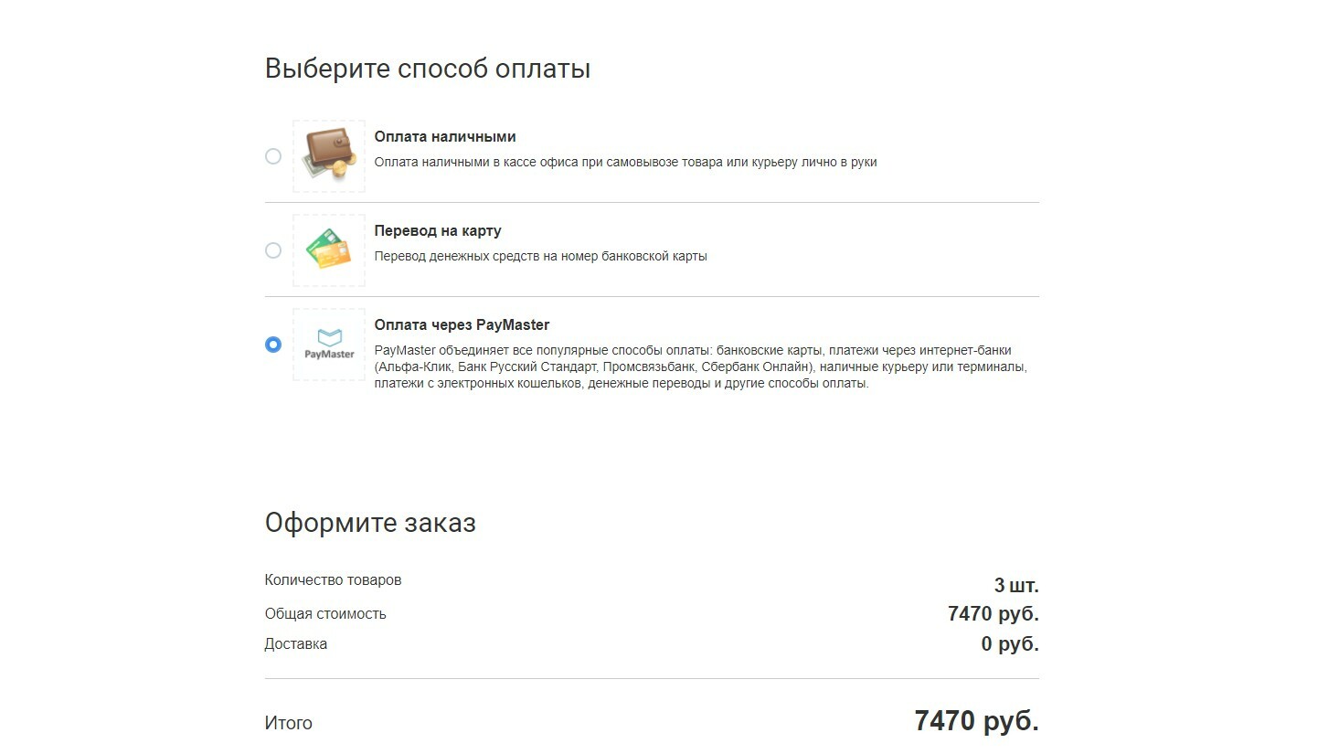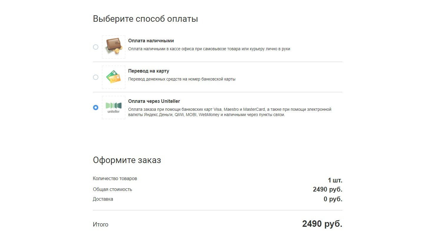 В стандартном интернет-магазине для uKit присутствуют всего два способа оплаты: