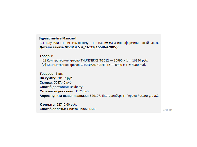 Данный модуль позволяет дублировать уведомления об оформленном заказе, отправляя их с деталями заказа на Ваш Telegram. Отправка уведомлений осуществляется путём создания бота.