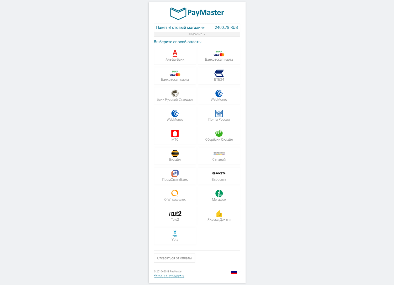 Способы оплаты в PayMaster