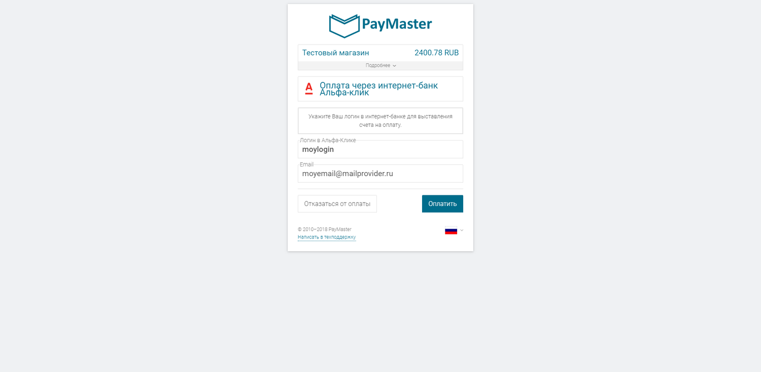 Оплата через PayMaster