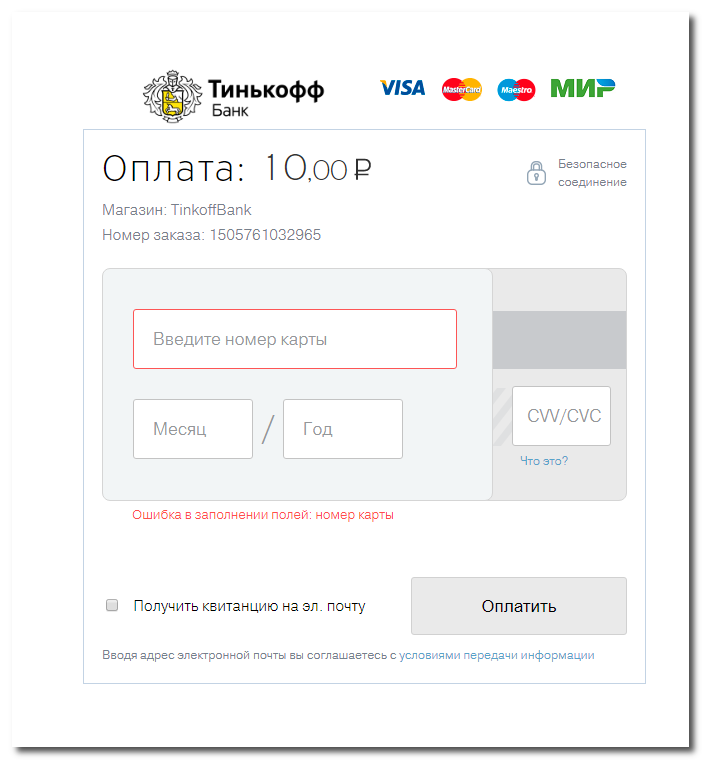Оплата через Тинькофф